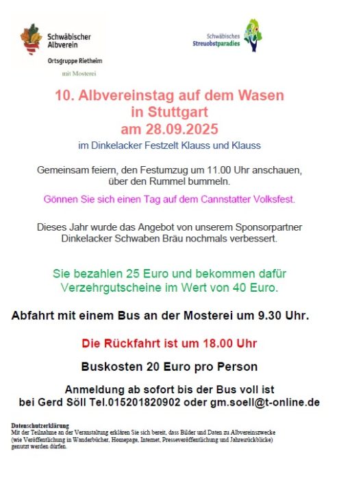 10. Albvereinstag auf dem Wasen 9:30 Uhr