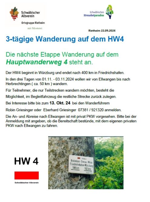 3-Tage Wanderung Fr., 01.11.2024 - So., 03.11.2024, Münsingen/Rietheim Uhrzeit: 00:00 Ort: Mosterei Münsinger Straße 58 72525 Münsingen/Rietheim iCalendar Mit dem Laden der Karte akzeptieren Sie die Datenschutzerklärung von Google.Mehr erfahren Karte laden Google Maps immer entsperren zur Übersicht