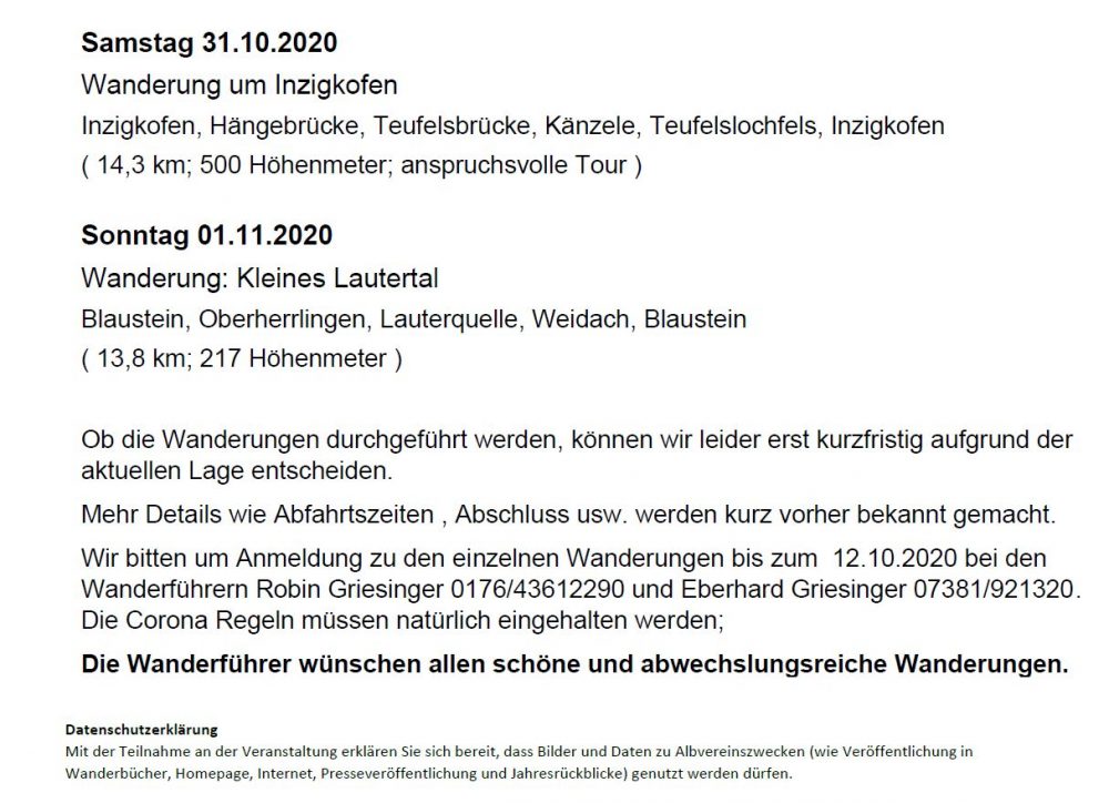 3-Tage Wanderung mal anders Fr., 30.10.2020 - So., 01.11.2020, Münsingen/Rietheim Uhrzeit: Ganztägig Ort: Mosterei Münsinger Straße 58 72525 Münsingen/Rietheim iCalendar Mit dem Laden der Karte akzeptieren Sie die Datenschutzerklärung von Google.Mehr erfahren Karte laden Google Maps immer entsperren zur Übersicht