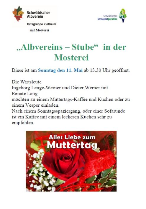Albvereins-Stube 13:30 Uhr So., 11.05.2025, Münsingen Uhrzeit: 00:00 Ort: Albvereins-Stube / Mosterei Münsingerstr. 58 72525 Münsingen iCalendar Mit dem Laden der Karte akzeptieren Sie die Datenschutzerklärung von Google.Mehr erfahren Karte laden Google Maps immer entsperren zur Übersicht