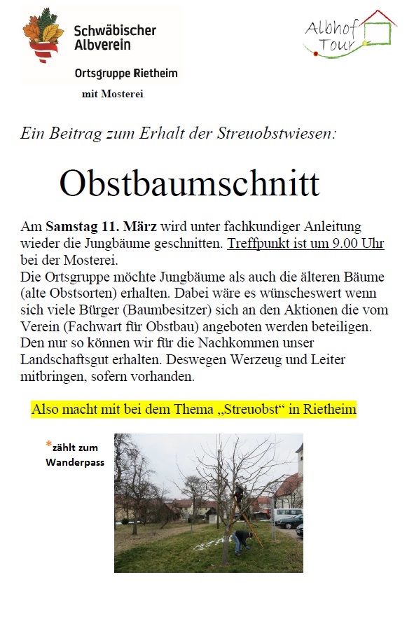 Baumpflege zum Erhalt der Streuobstwiesen Sa., 11.03.2017, Münsingen/Rietheim Uhrzeit: 00:00 Ort: Mosterei Münsinger Straße 58 72525 Münsingen/Rietheim iCalendar Mit dem Laden der Karte akzeptieren Sie die Datenschutzerklärung von Google.Mehr erfahren Karte laden Google Maps immer entsperren zur Übersicht
