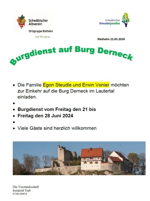 Burgdienst auf der Derneck Fr., 21.06.2024 - Fr., 28.06.2024, Münzdorf Uhrzeit: 00:00 Ort: Burg Derneck Schlosshalde 1 72534 Münzdorf iCalendar Mit dem Laden der Karte akzeptieren Sie die Datenschutzerklärung von Google.Mehr erfahren Karte laden Google Maps immer entsperren zur Übersicht