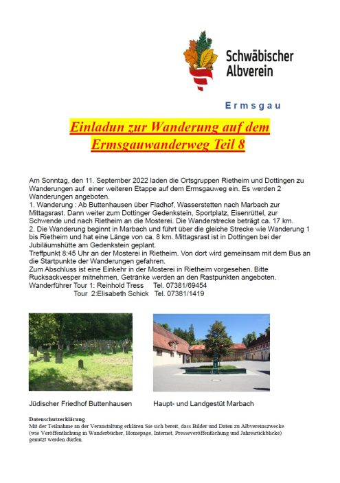 Ermsgauwanderweg Teil 8 8:45 Uhr So., 11.09.2022, Münsingen/Rietheim Uhrzeit: 00:00 Ort: Mosterei Münsinger Straße 58 72525 Münsingen/Rietheim iCalendar Mit dem Laden der Karte akzeptieren Sie die Datenschutzerklärung von Google.Mehr erfahren Karte laden Google Maps immer entsperren zur Übersicht