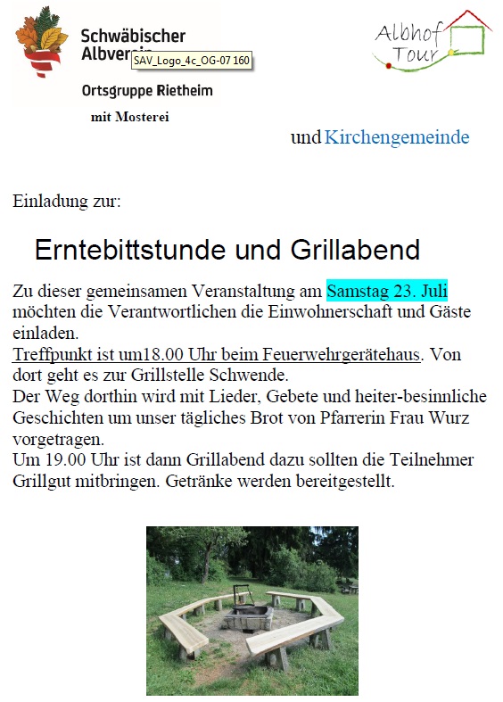 Erntebittstunde und Grillabend Sa., 23.07.2016, Uhrzeit: Ganztägig iCalendar Mit dem Laden der Karte akzeptieren Sie die Datenschutzerklärung von Google.Mehr erfahren Karte laden Google Maps immer entsperren zur Übersicht