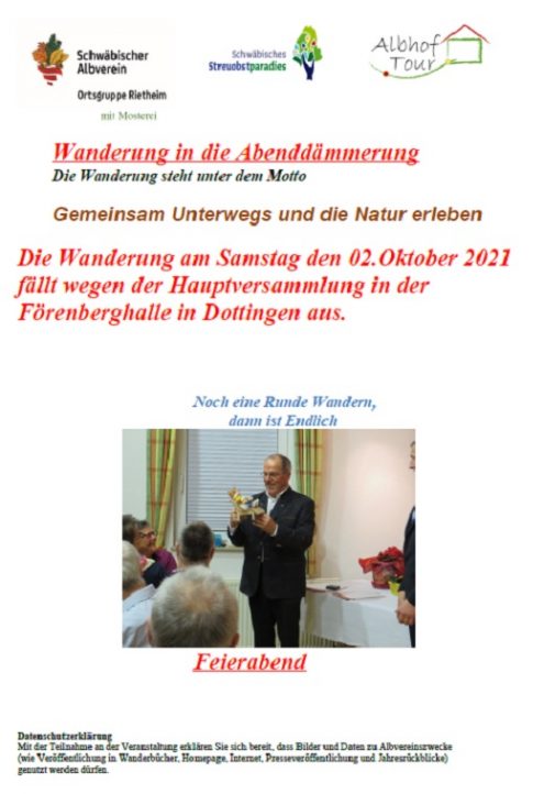 Feierabendwanderung fällt aus Sa., 02.10.2021, Uhrzeit: 00:00 iCalendar Mit dem Laden der Karte akzeptieren Sie die Datenschutzerklärung von Google.Mehr erfahren Karte laden Google Maps immer entsperren zur Übersicht