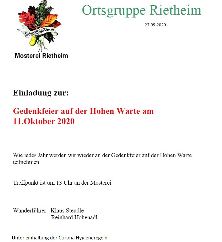 Gedenkfeier auf der Hohen Warte 13:00 Uhr
