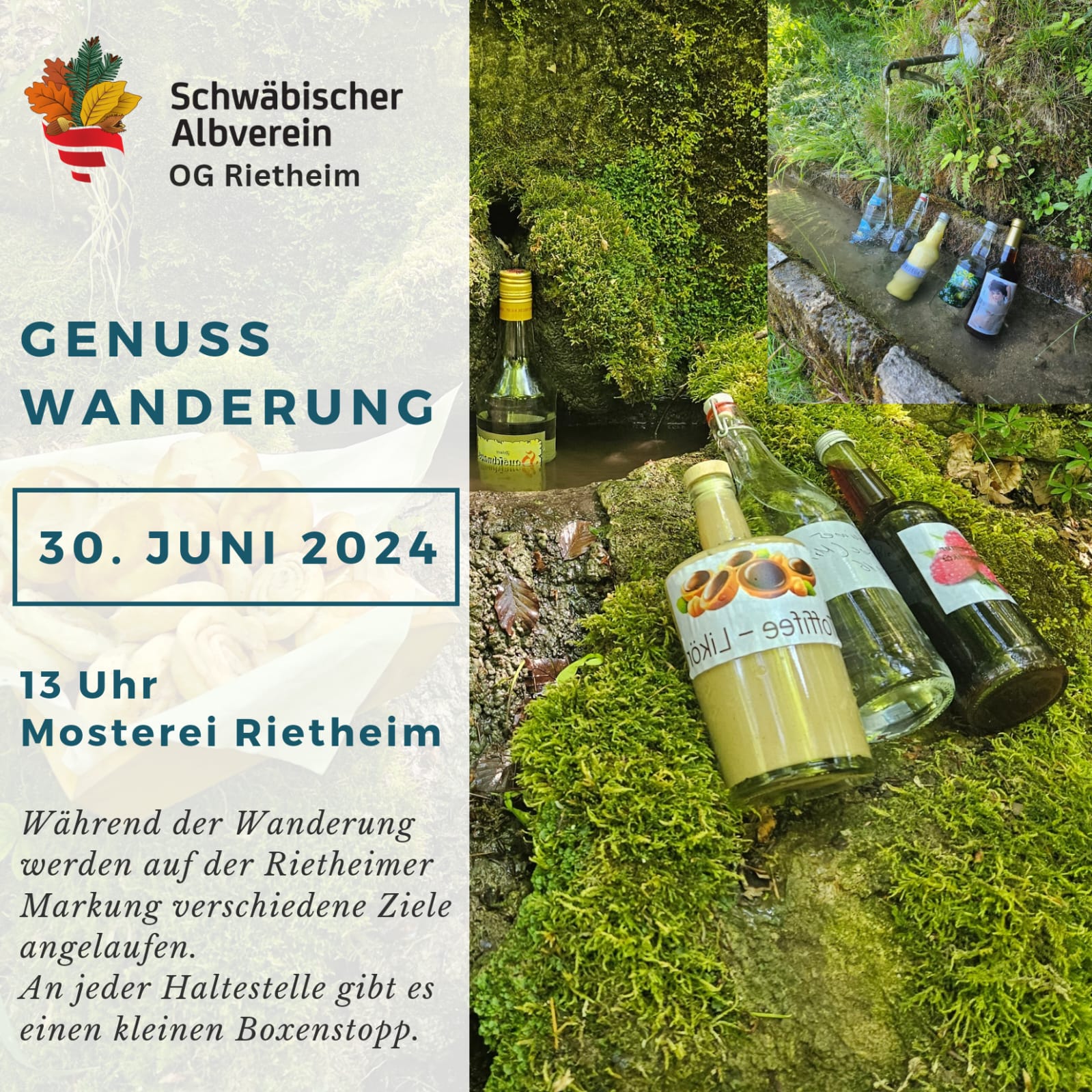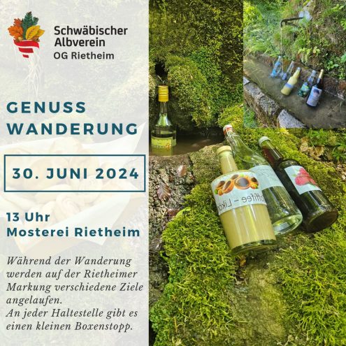 Genuss Wanderung 13:00 Uhr So., 30.06.2024, Münsingen/Rietheim Uhrzeit: 00:00 Ort: Mosterei Münsinger Straße 58 72525 Münsingen/Rietheim iCalendar Mit dem Laden der Karte akzeptieren Sie die Datenschutzerklärung von Google.Mehr erfahren Karte laden Google Maps immer entsperren zur Übersicht