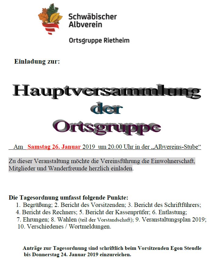 Hauptversammlung der Ortsgruppe