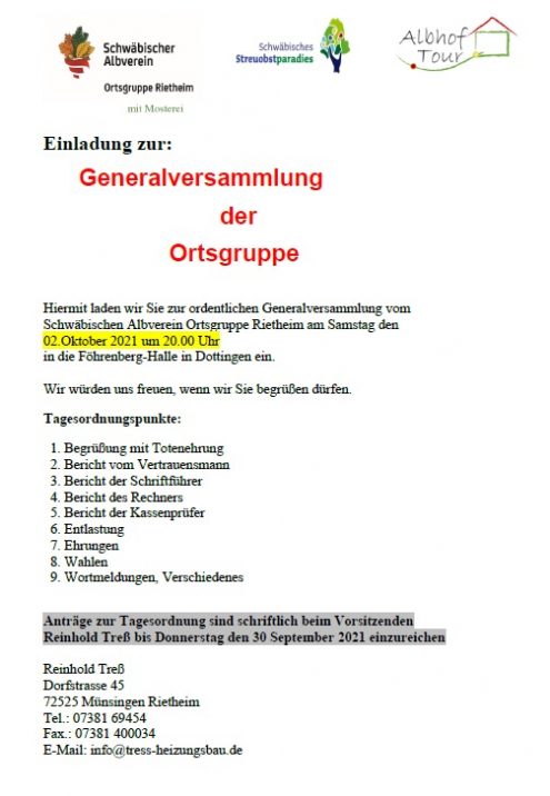 Hauptversammlung Föhrenberg-Halle 20:Uhr Sa., 02.10.2021, Münsingen / Dottingen Uhrzeit: Ganztägig Ort: Föhrenberg-Halle Kastanieweg 72525 Münsingen / Dottingen iCalendar Mit dem Laden der Karte akzeptieren Sie die Datenschutzerklärung von Google.Mehr erfahren Karte laden Google Maps immer entsperren zur Übersicht