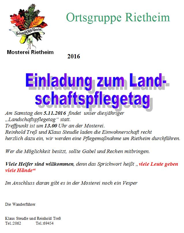 Landschaftspflegetag Sa., 05.11.2016, Münsingen/Rietheim Uhrzeit: Ganztägig Ort: Mosterei Münsinger Straße 58 72525 Münsingen/Rietheim iCalendar Mit dem Laden der Karte akzeptieren Sie die Datenschutzerklärung von Google.Mehr erfahren Karte laden Google Maps immer entsperren zur Übersicht