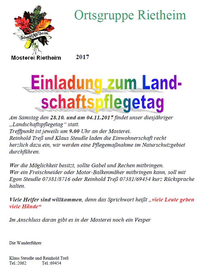 Landschaftspflegetag Sa., 28.10.2017, Münsingen/Rietheim Uhrzeit: Ganztägig Ort: Mosterei Münsinger Straße 58 72525 Münsingen/Rietheim iCalendar Mit dem Laden der Karte akzeptieren Sie die Datenschutzerklärung von Google.Mehr erfahren Karte laden Google Maps immer entsperren zur Übersicht