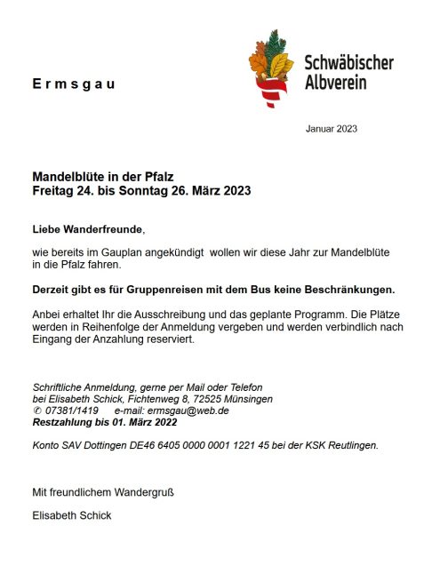 Mandelblüte in der Pfalz Fr., 24.03.2023 - So., 26.03.2023, Uhrzeit: 00:00 iCalendar Mit dem Laden der Karte akzeptieren Sie die Datenschutzerklärung von Google.Mehr erfahren Karte laden Google Maps immer entsperren zur Übersicht