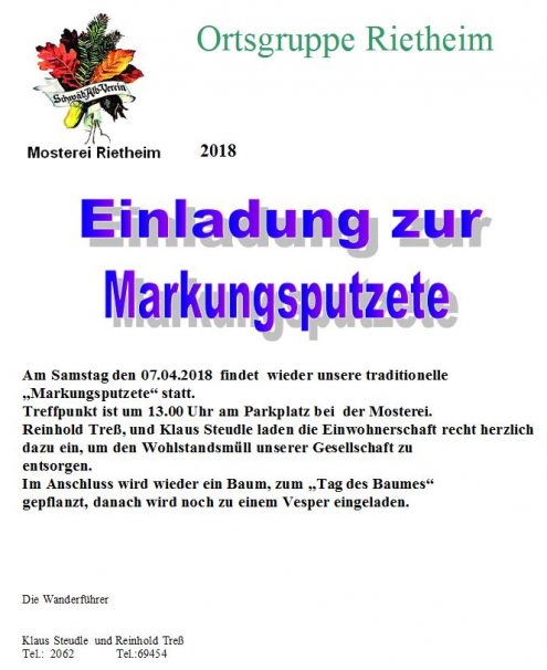 Markungsputzete Sa., 07.04.2018, Münsingen/Rietheim Uhrzeit: 00:00 Ort: Mosterei Münsinger Straße 58 72525 Münsingen/Rietheim iCalendar Mit dem Laden der Karte akzeptieren Sie die Datenschutzerklärung von Google.Mehr erfahren Karte laden Google Maps immer entsperren zur Übersicht