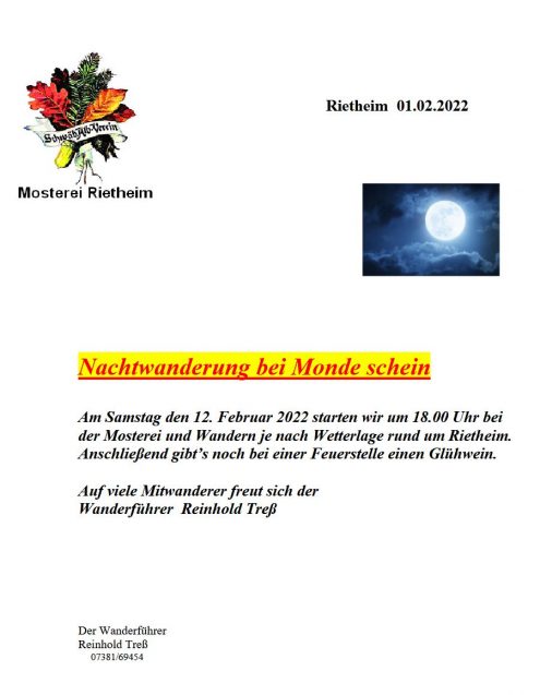 Nachtwanderung bei Mondenschein 18:00 Uhr
