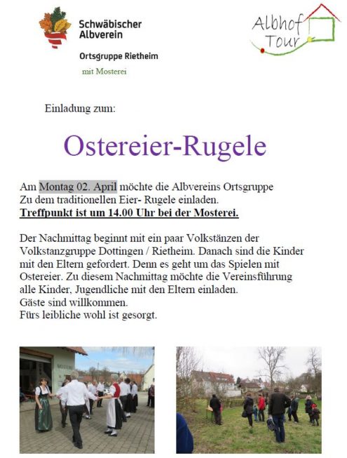 Osteroier rugla Mo., 02.04.2018, Münsingen/Rietheim Uhrzeit: 00:00 Ort: Mosterei Münsinger Straße 58 72525 Münsingen/Rietheim iCalendar Mit dem Laden der Karte akzeptieren Sie die Datenschutzerklärung von Google.Mehr erfahren Karte laden Google Maps immer entsperren zur Übersicht