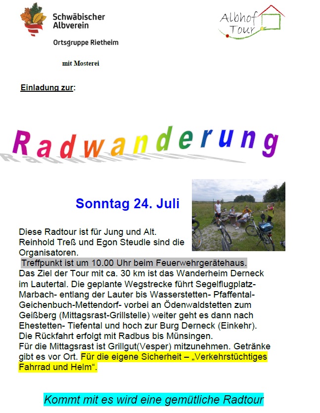 Radwanderung So., 24.07.2016, Münsingen/Rietheim Uhrzeit: Ganztägig Ort: Feuerwehrhaus Münsingerstrasse 72525 Münsingen/Rietheim iCalendar Mit dem Laden der Karte akzeptieren Sie die Datenschutzerklärung von Google.Mehr erfahren Karte laden Google Maps immer entsperren zur Übersicht
