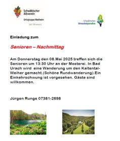 Senioren-Nachmittag 13:30 Uhr Do., 08.05.2025, Münsingen/Rietheim Uhrzeit: 00:00 Ort: Mosterei Münsinger Straße 58 72525 Münsingen/Rietheim iCalendar Mit dem Laden der Karte akzeptieren Sie die Datenschutzerklärung von Google.Mehr erfahren Karte laden Google Maps immer entsperren zur Übersicht