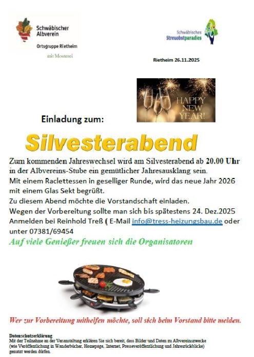 Silvesterabend 20:00 Uhr/Anmeldung erfoderlich