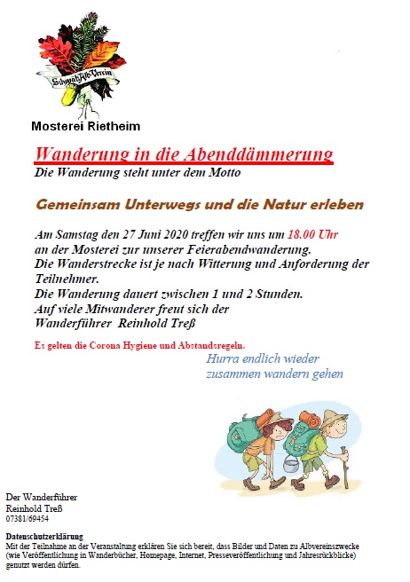 Wanderung in die Abenddämmerung 18:00 Uhr Sa., 27.06.2020, Münsingen Uhrzeit: Ganztägig Ort: Albvereins-Stube / Mosterei Münsingerstr. 58 72525 Münsingen iCalendar Mit dem Laden der Karte akzeptieren Sie die Datenschutzerklärung von Google.Mehr erfahren Karte laden Google Maps immer entsperren zur Übersicht
