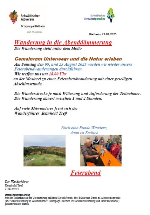 Wanderung in die Abenddämmerung 18:00 Uhr