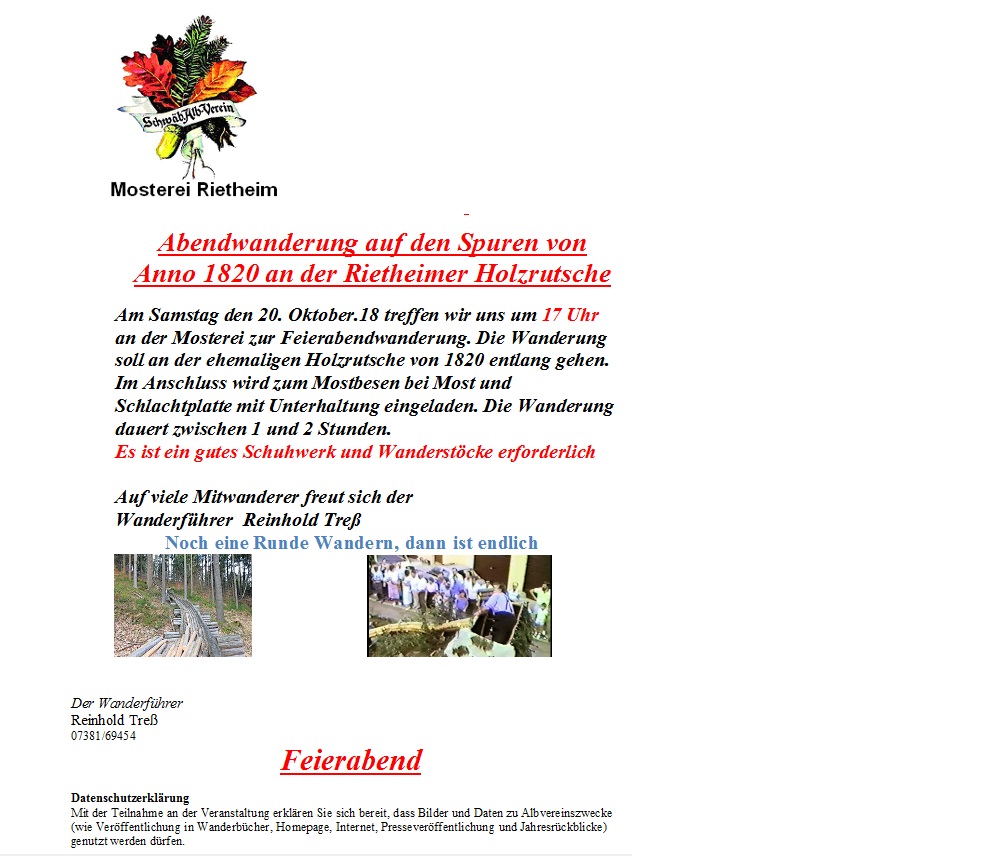 Abendwanderung auf den Spuren von Anno 1820 um 17.00 Uhr