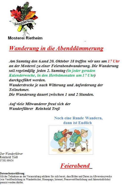 Wanderung in die Abenddämmerung jetzt wieder um 17.00 Uhr